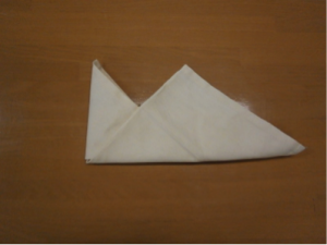 6.右側の折り返されたところをめくり、三角がふたつ並んだような形にします