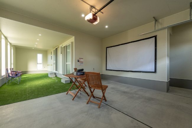 ガレージの中で過ごすためには、そのスペースも考えなければなりません。遊ぶときに車をガレージから出すなどの方法などがありますが、それが億劫な方は、上記の写真のようにガレージ奥に遊ぶためのスペースを設けることもお勧めです。その分耐震や金額の問題があるので、しっかり打ち合わせをする必要があります。