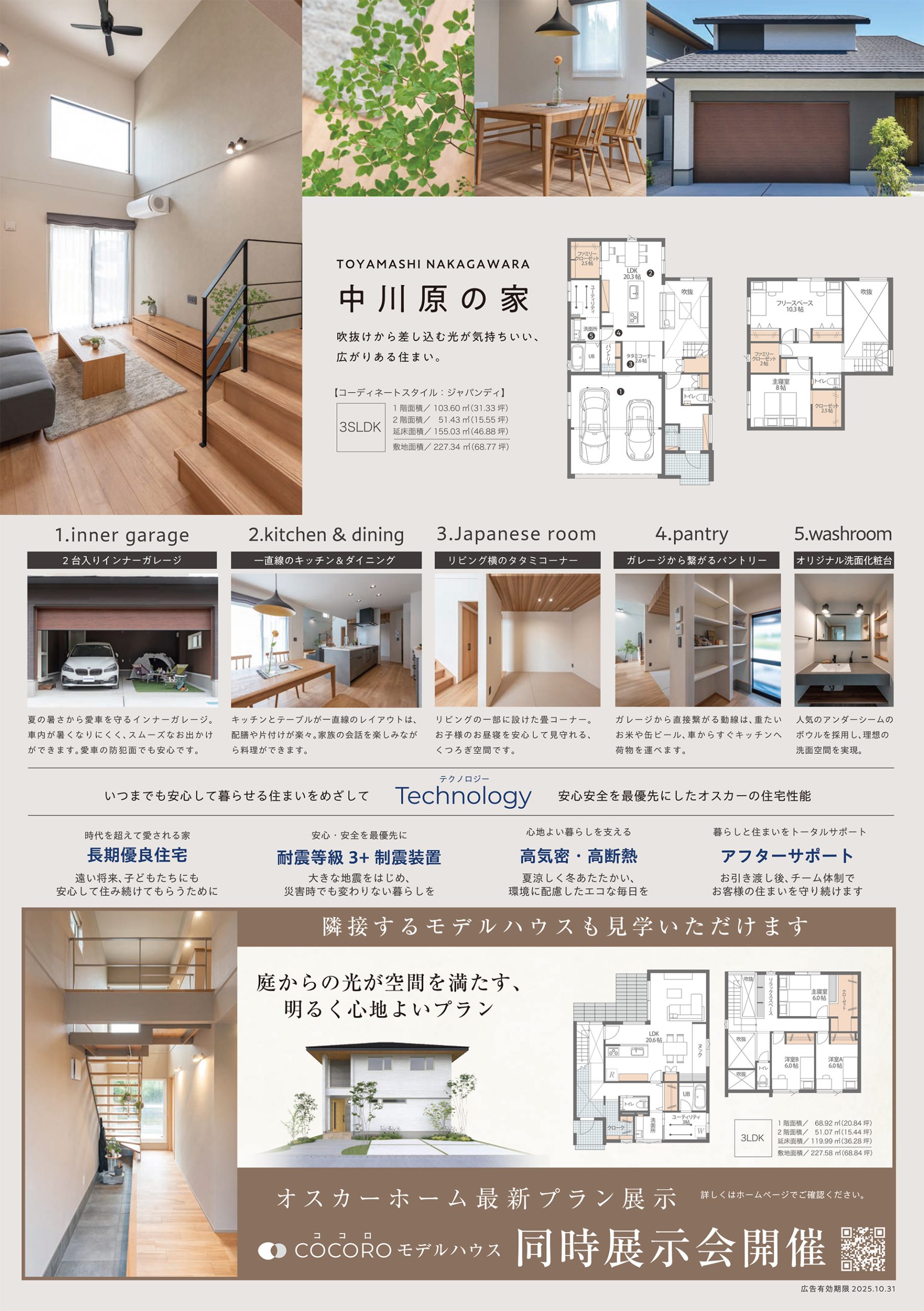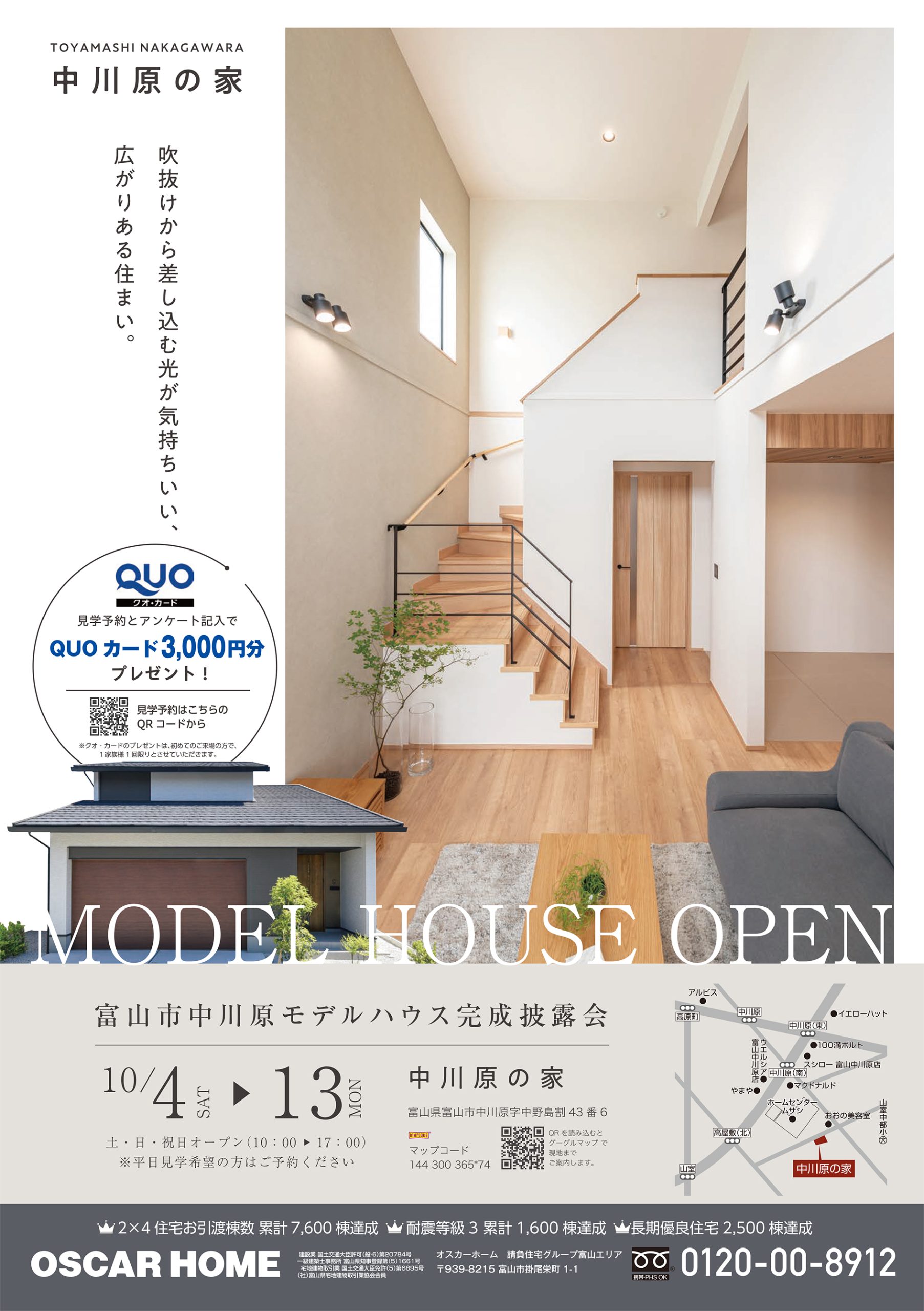 オスカーホームトップ > トピックス > モデルハウス見学会 > 【チラシ】富山市中川原 モデルハウス完成披露会