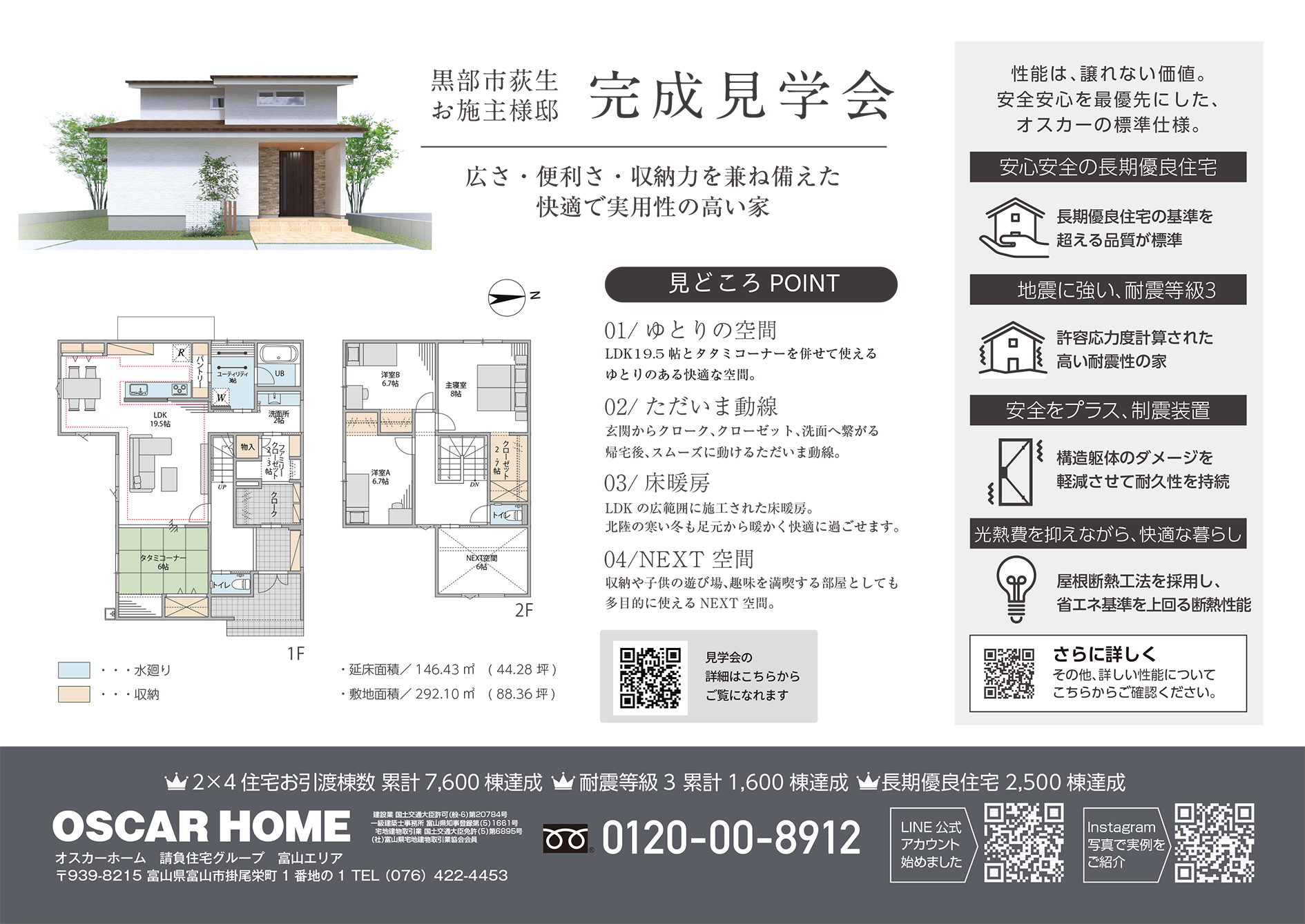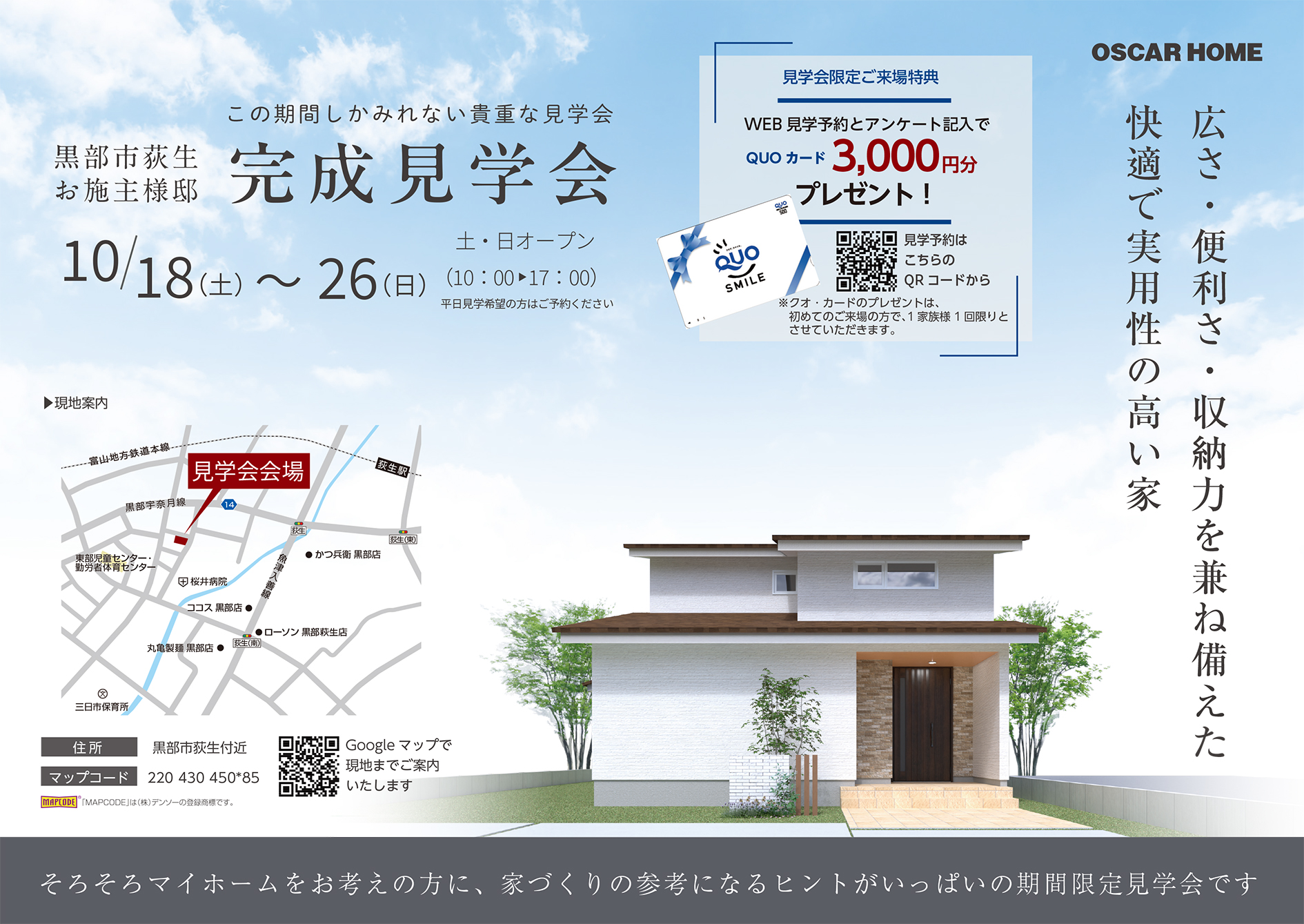 オスカーホームトップ > トピックス > 完成見学会 > 【チラシ】黒部市荻生 施主様邸 見学会開催