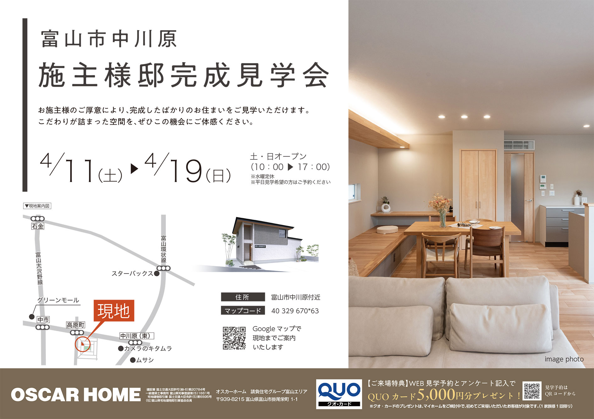 オスカーホームトップ > トピックス > 完成見学会 > 【チラシ】富山市中川原 施主様邸 見学会開催