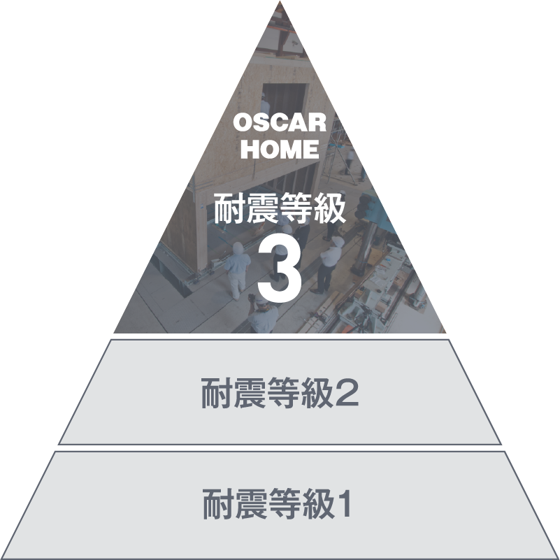 オスカーホームは全棟で震度6~7の強い揺れにも耐えられる、許容応力度計算された国内最高レベルの耐震等級3にくわえ、短期間で繰り返し発生する地震による小さな損傷や、恐怖心を軽減するための制震装置が標準仕様となっています。
