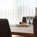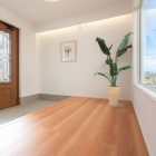 明るく開放感ある高天井リビング。 2 箇所の窓からテラスと中庭を眺められます。