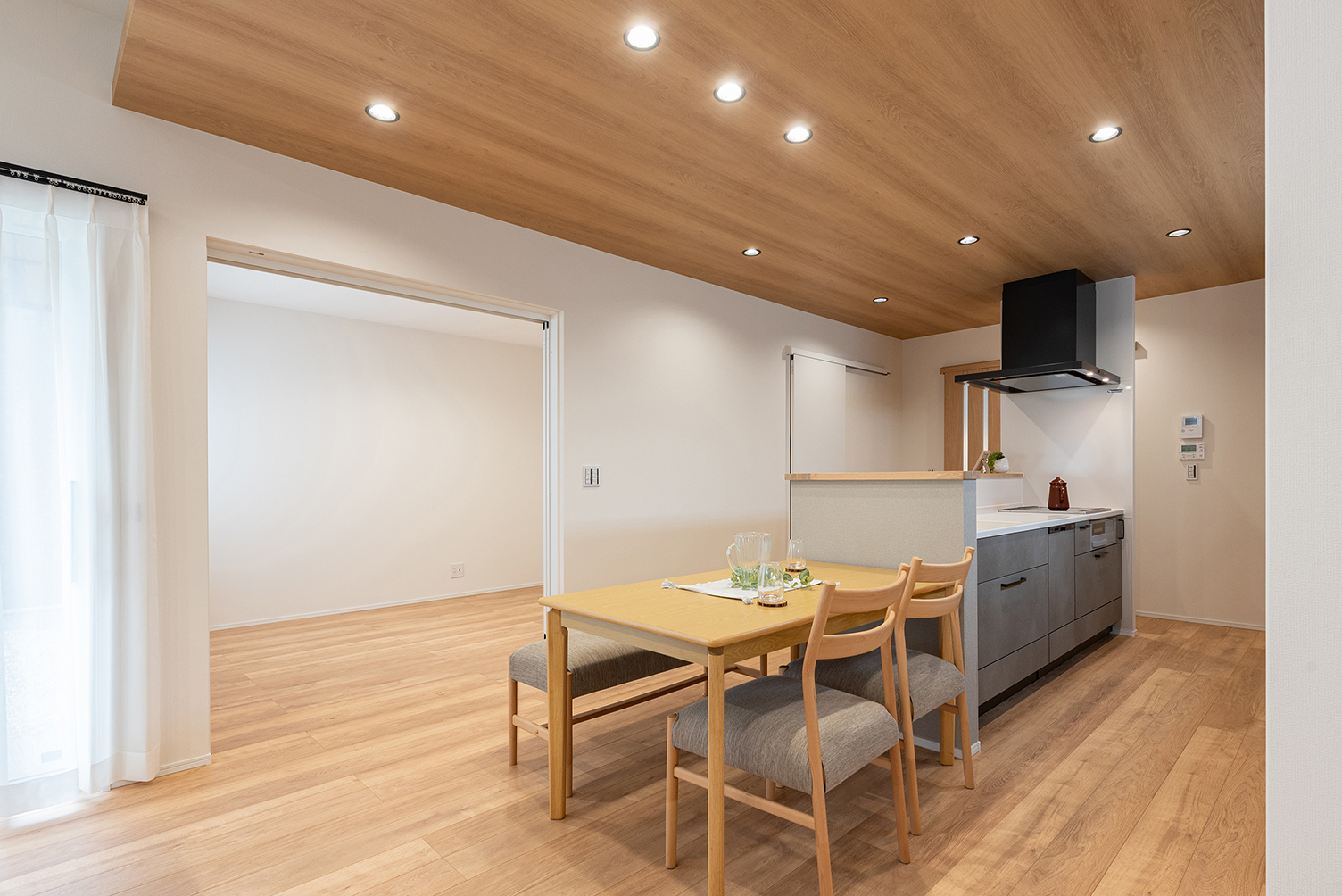 リビングとひとつながりの洋室は、大きく開口する事で部屋の延長として広々ゆったり使う事ができます。ライフスタイルに合わせて使い分けのできるフレキシブルな空間。