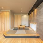 主寝室は小上がりの畳敷きにしました。おやすみ前のひと時を過ごせるリラックススペースももうけました。