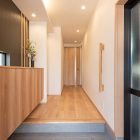 洗面室とつながるユーティリティは棚付きで、洗剤や掃除用具などをしまえてスッキリ片付きます。