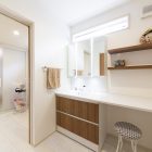 また、以前の住まいで感じていた寒さや動線を教訓に、洗面・脱衣所にも床暖房を設置、ファミリークローゼット、パントリー、キッチンがつながる動線にして家事の効率化を目指しました。
