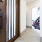 Fさん邸の一番の特徴は来客時の間取りがストレスフリーなこと。例えば、玄関が直接ドアから入るお客様用と、インナーガレージ側から入る家族用で分けた他、来客用の駐車スペースも広めにとり、お客様が玄関を遠ったあとは家族スペースを通らず和室へ案内できます。