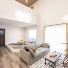 開放感たっぷりの吹抜けリビングは、明るく心地の良い空間。